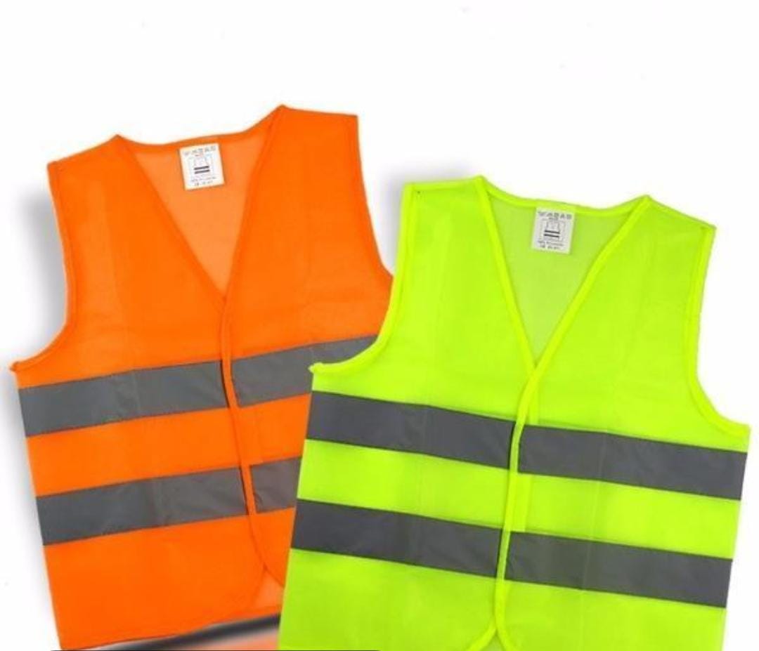 Chaleco Fabricado en polyester con franjas reflectivas, colores: verde o naranja.